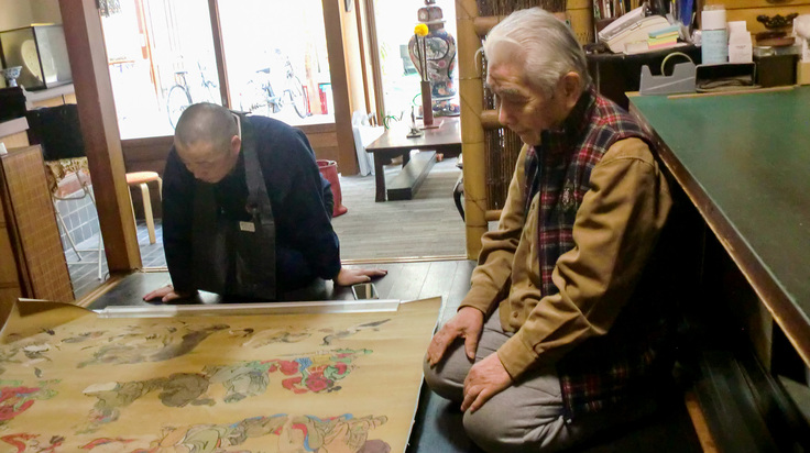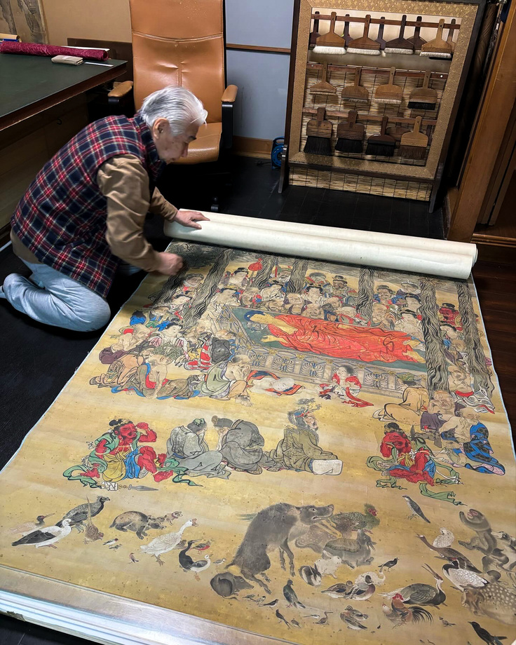 先日、横浜の表具師さんのところに赴き、修復を開始した涅槃図と再会し、