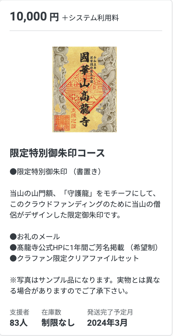 当山の山門額、「守護龍」をモチーフにして、このクラウドファンディングのために当山の僧侶がデザインした限定御朱印です。