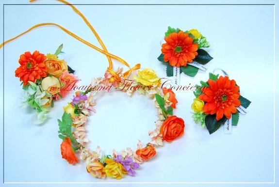 星野さんには、ファッションショーにて子ども達がつける花冠とサンダルの花飾り、女子大生モデル用の髪飾りをそれぞれ10色分作って頂きました。