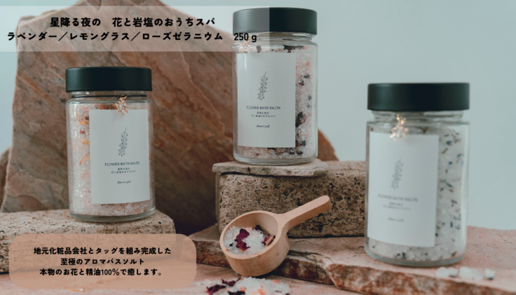 今ではありがたい事に、たくさんの素敵なご縁を頂き、じいじが愛情込めて育てたお米を焙煎した焙煎玄米、地元ジビエが捌く臭みのない絶品ジビエ肉のレトルト商品、地元化粧品会社とタッグを組み完成した精油と花で癒す至極のバスソルトなどの商品が出来ました。