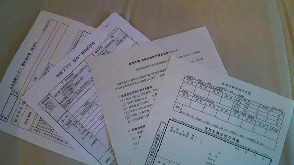 フライヤーを置いていただく為に、慣れない書類書きに奮闘しています。
