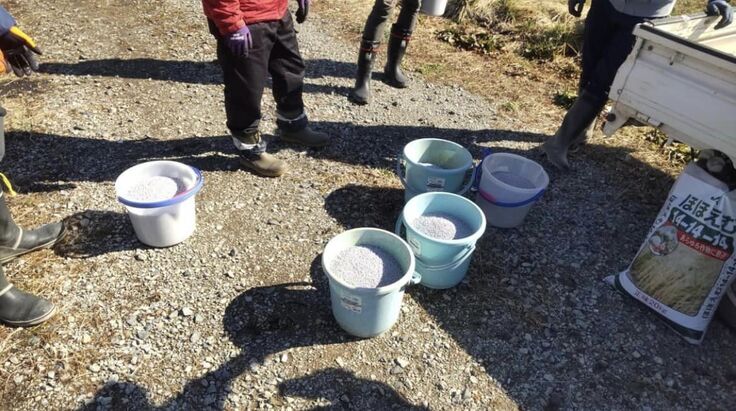 3/19(日)は、前回に引き続き今年のGWに開催予定の「なの花めいろ」に向けて、菜の花への追肥と雑草除去のための除草剤を撒きました。