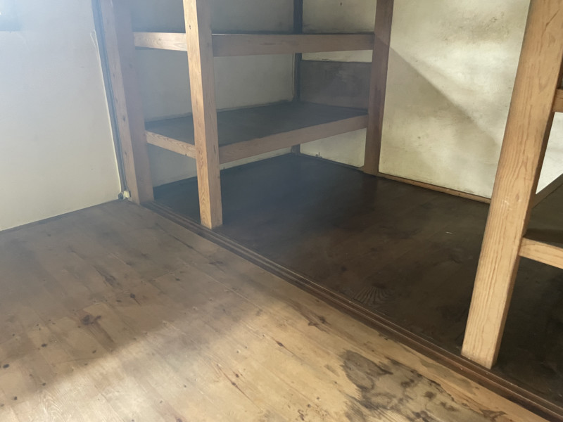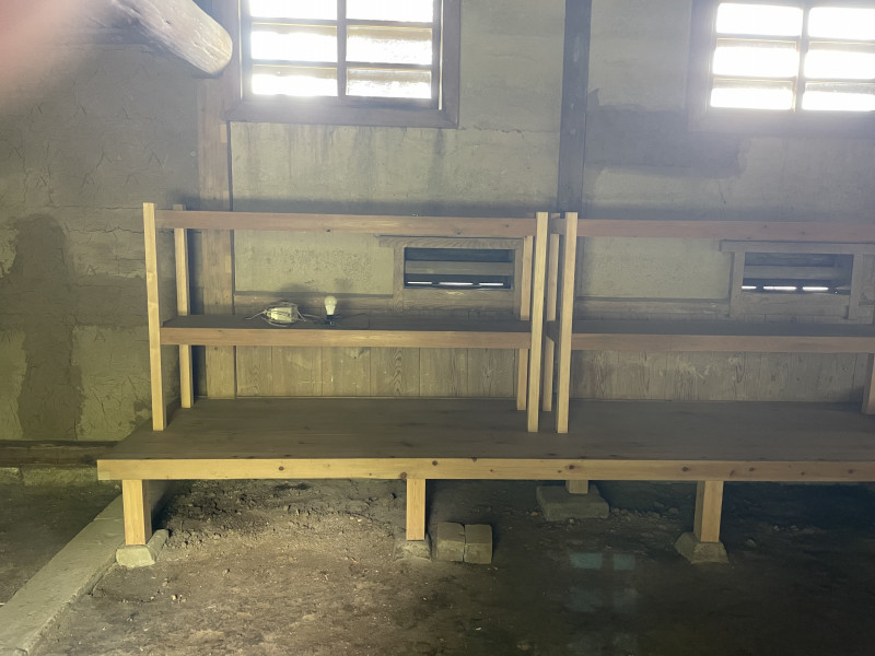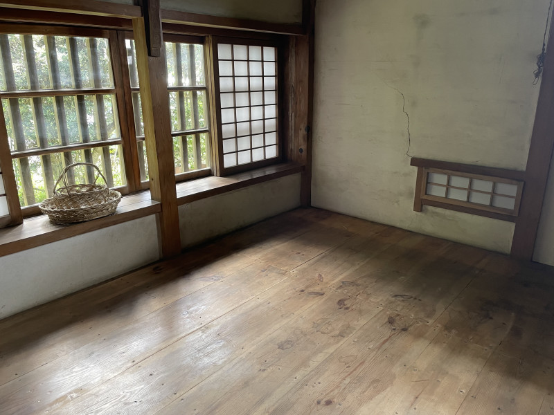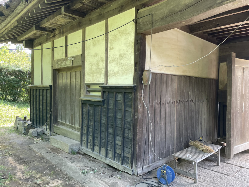 濱田邸の長屋門修復もいよいよ大詰。土台や荒壁の修復も終わり雨避けの腰板も修復され元の位置へ。内装も終わり濱田とリーチのロクロ台も昔の姿に戻った。リーチルームも床板が貼られ屋根の茅の吹き替えに工程が進むという。