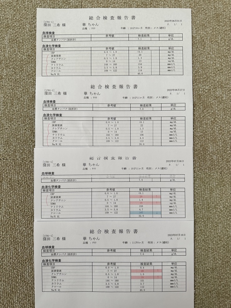 また少し…腎臓の数値が上がってしまっていました…