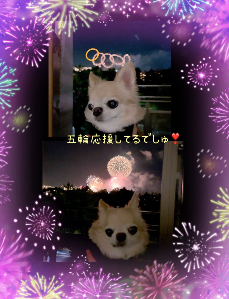 生まれて初めて、花火🎇をバックに、パチリ📷✨