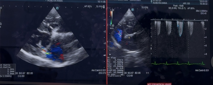 右心の三尖弁の逆流と肺高血圧症も、変わらず…中等度でした…