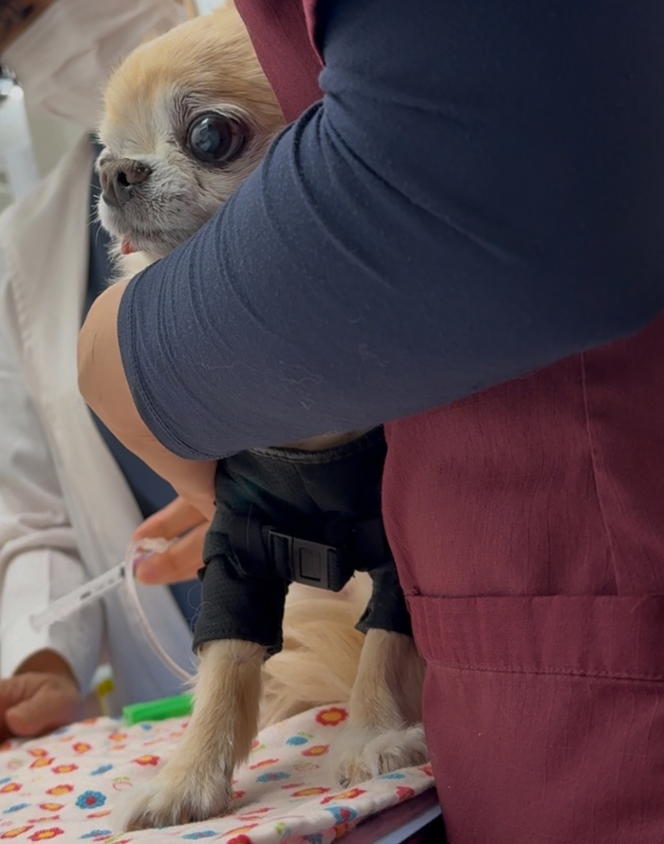 「キャン」と声を出し、それでも頑張ってくれている姿に