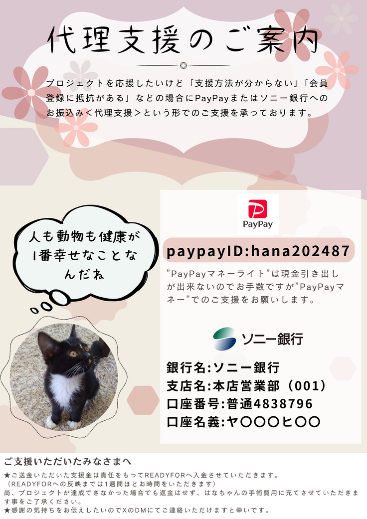 8/11 武田様 5000円 PayPayよりご支援いただきました。(反映まで1週間ほどお時間ちょうだいいたします)