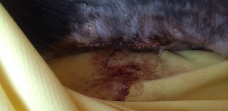 素人目では傷口が開いてるか分からず(血は固まっているように見える)