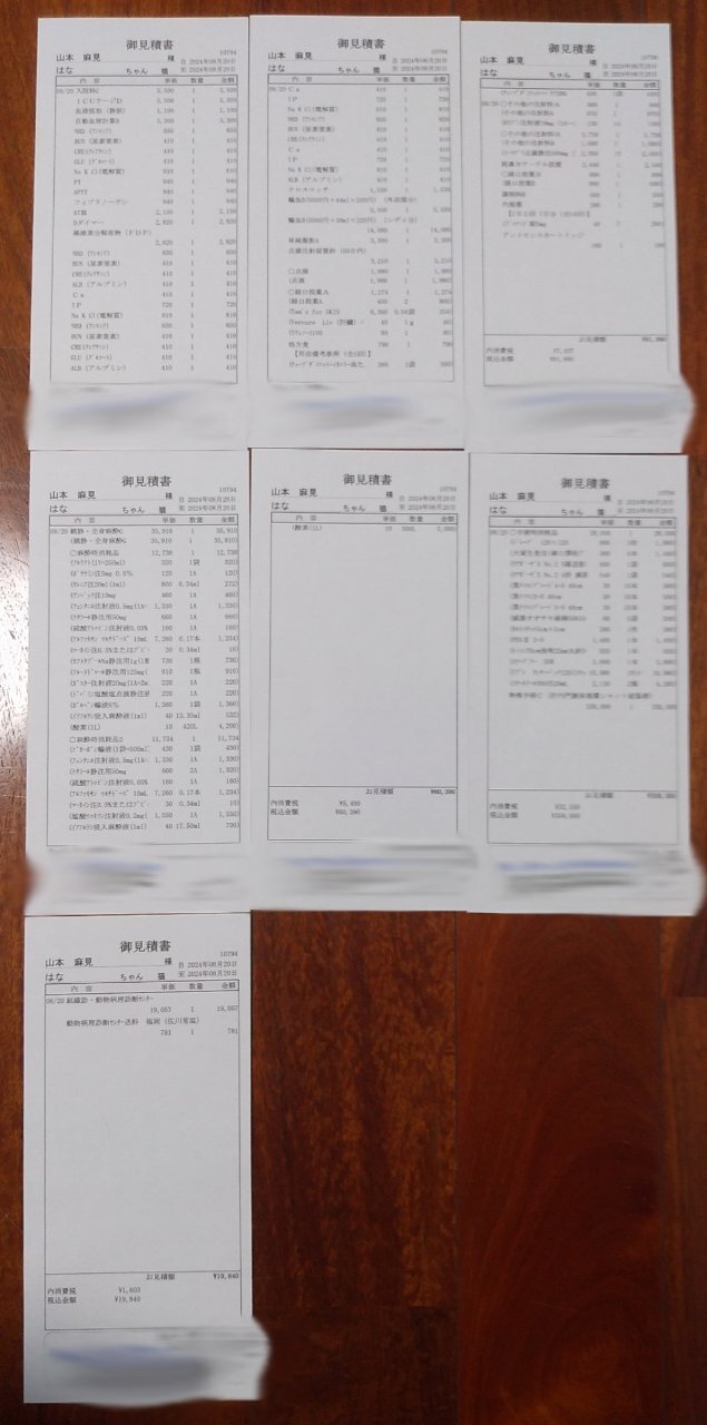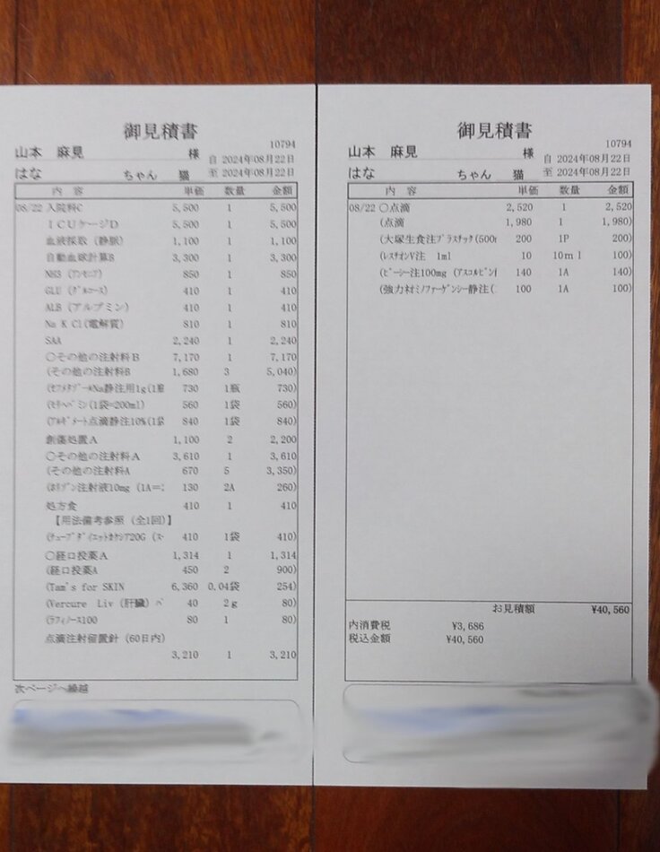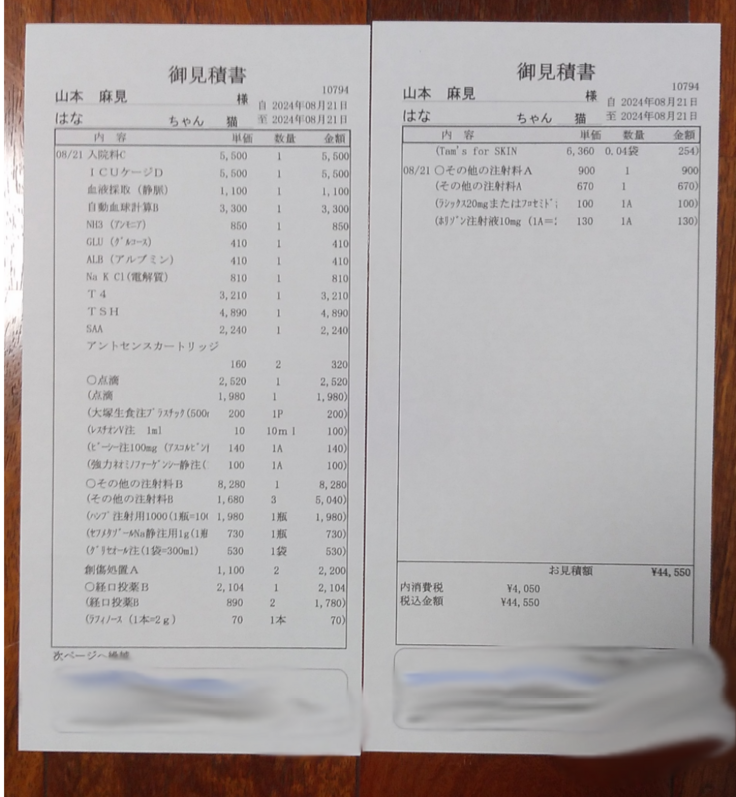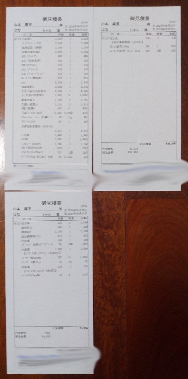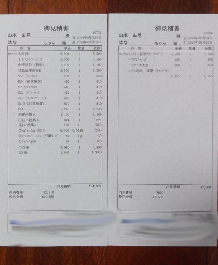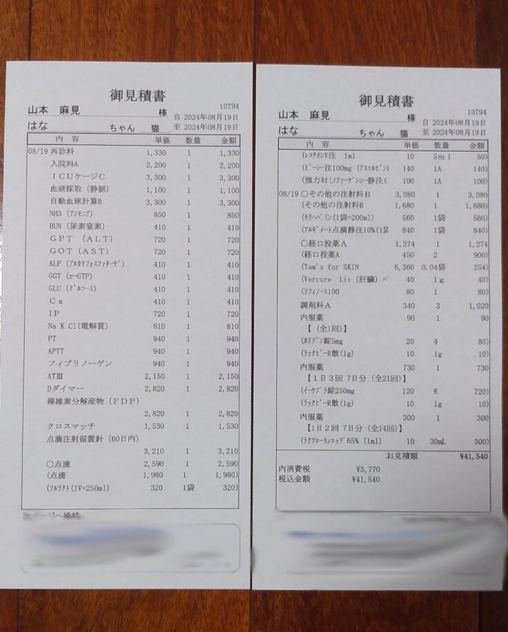 別途入院費については、記載している処置検査費を含む治療費のほうに充てさせいただきたく思います。※かかった費用は随時アップいたします