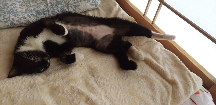 ビクビクッとして、ちょいちょい体勢かえるために起きてしまい、あまり熟睡できてはないようですが、久しぶりに気持ち良さそうにしている姿を見ることができました😳