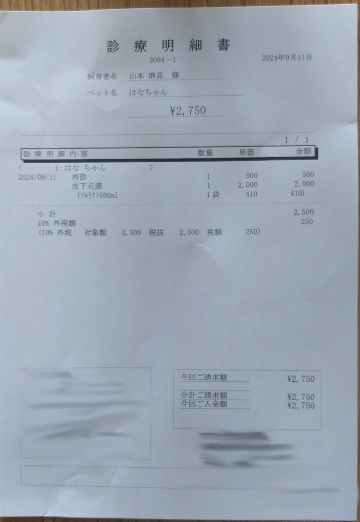 熱は平熱、皮下注射は5分ほど終わり、先生とお話して帰宅。