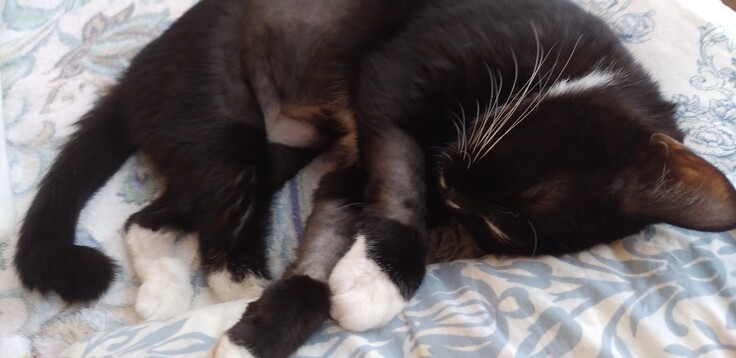 帰宅後、14時に🍚を3gほど口にし、食欲も元気もなく横になっていましたが、16時過ぎごろから、尻尾たててスリスリしてくれました😱