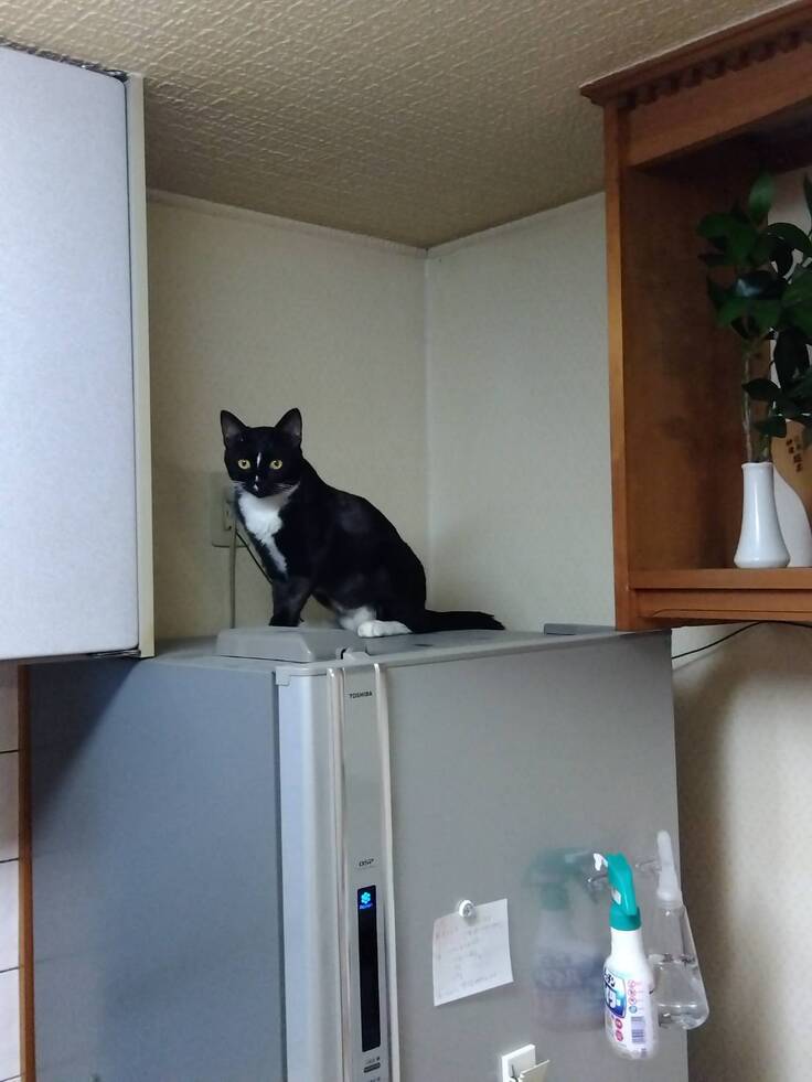 17時の間食🥦が30分過ぎただけで、冷蔵庫の上に登って2mほどの高さの神棚(米目当て?)まで登ってしまいました😣