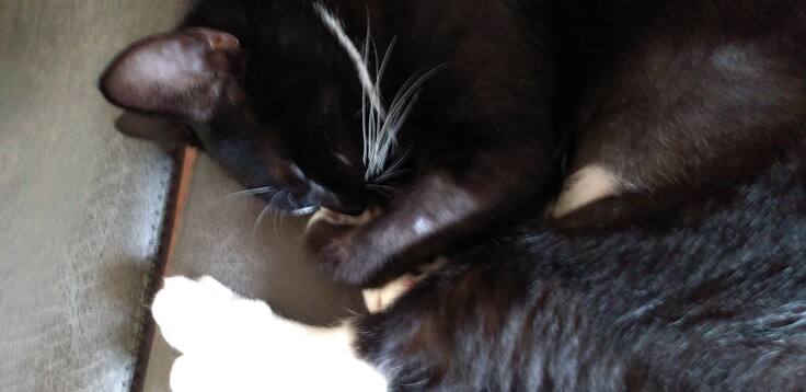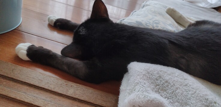 夜中はなちゃんがリビングの椅子の上で寝てしまったので、椅子の横に布団を敷いて寝ていたら、朝方は寒く、気づいたら私の顔の横で寝ていました😶🌫️うれしい