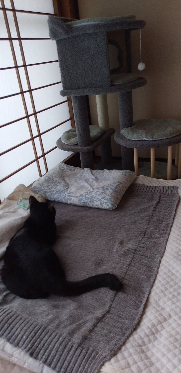 今日はキャットタワーが届いたけど、こんな状態なのでチラッと見ただけでした。