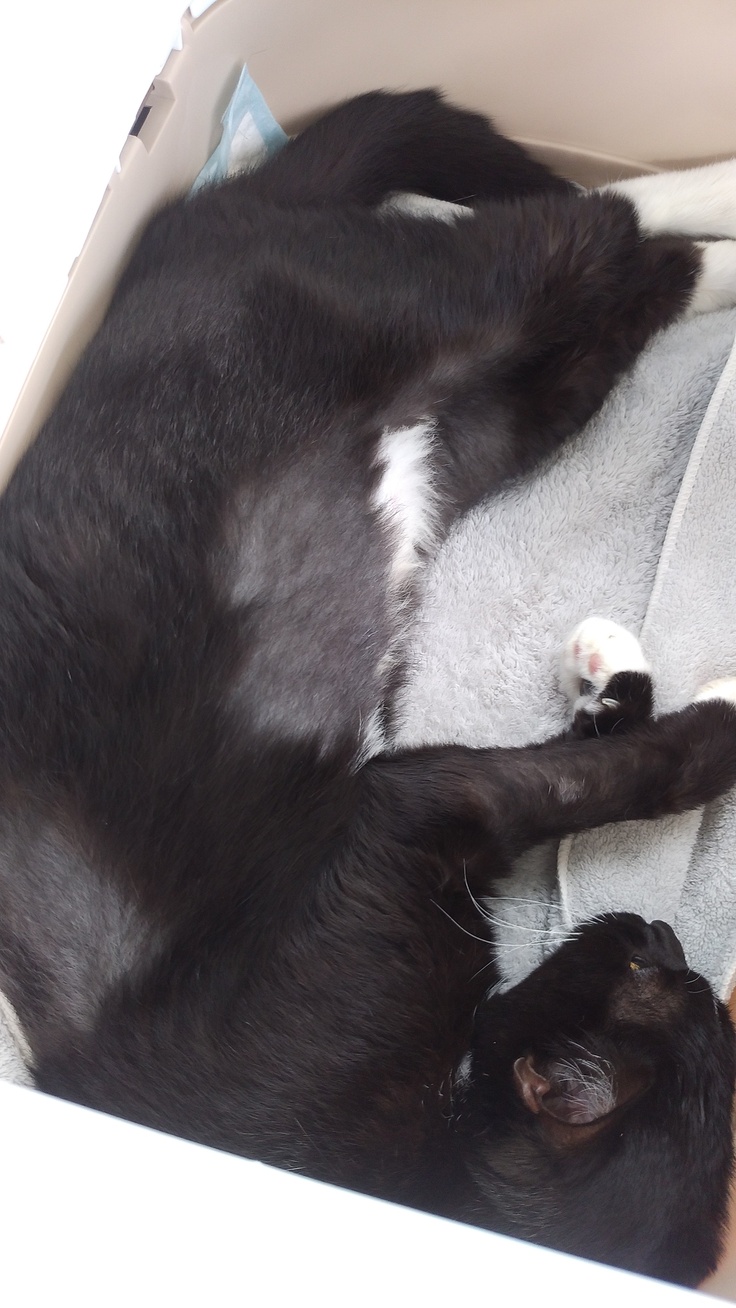 今までは車の中で待機している間にキャリーをあけると飛び出ていたのに、横たわって反応もしませんでした。
