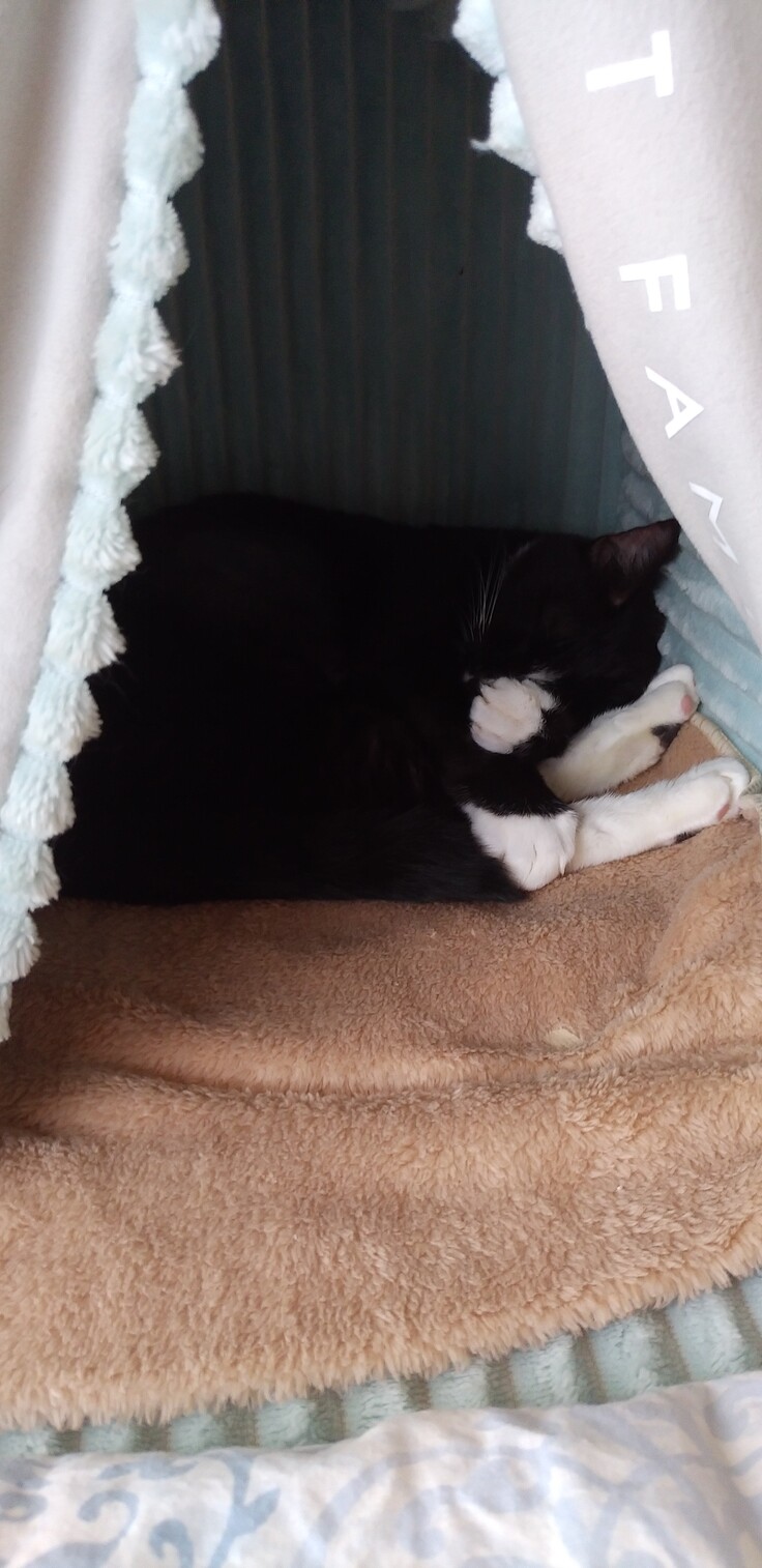 昨日は静脈点滴をして家に帰ってからも変わらず、話かけたり触れると離れ、辛そうにハウスの中に1人こもっていました。