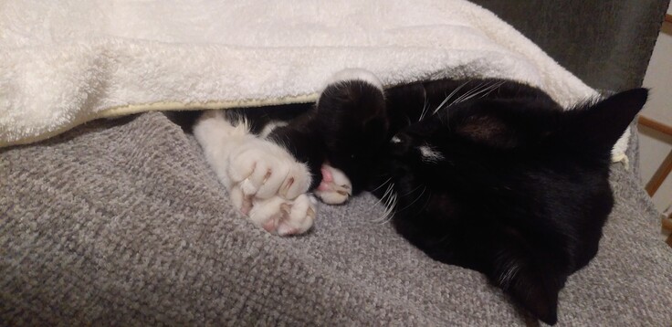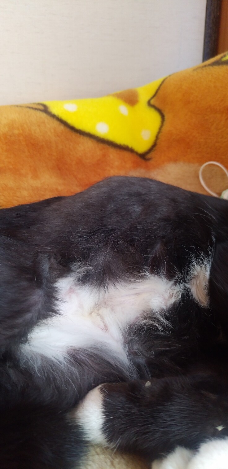 食後はお腹の音が鳴り、しんどそうに目を閉じてうずくまります。