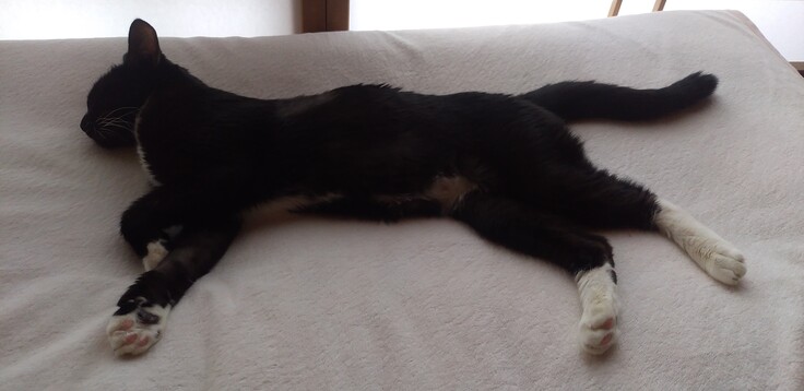 食事量は全然とれていませんが、某スポーツブランドのロゴのような姿で、気持ち良さそうにお昼寝できました💮