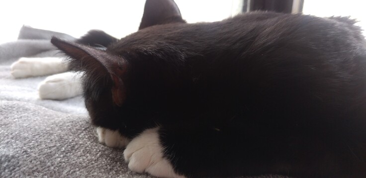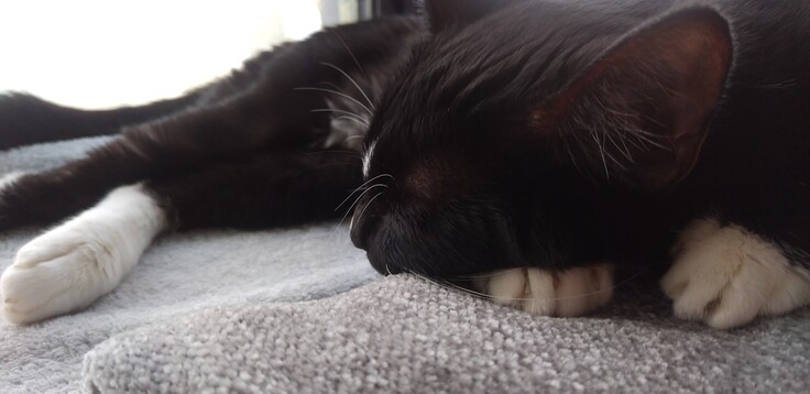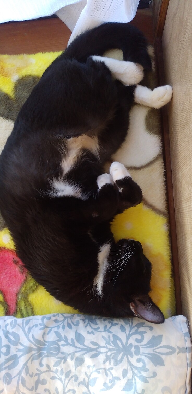 最近はキッチンの窓のところか、椅子の上で寝ます。