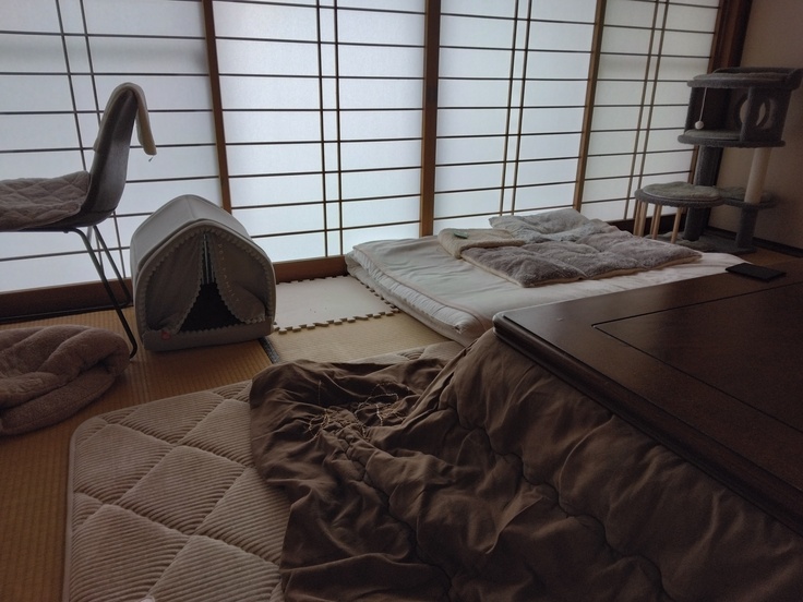 コタツは喜んでくれるかなと出してみたら、早速テーブルの上に乗ってくれたり中にはいって寝てくれました🤲有難い