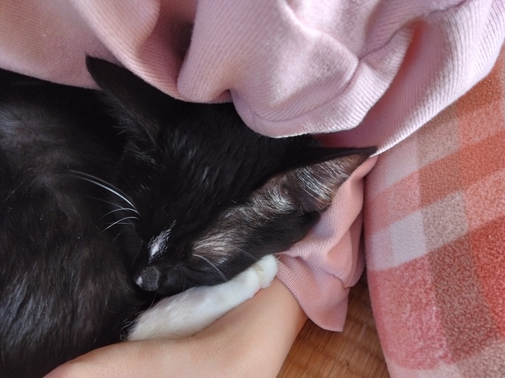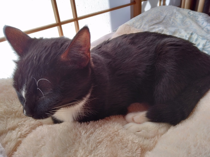 今朝ちょっと物にぶつかってコテンと倒れて、自分でびっくりしたのか腕の中で1時間ほどずっとゴロゴロと喉を鳴らして甘えん坊になっていました。