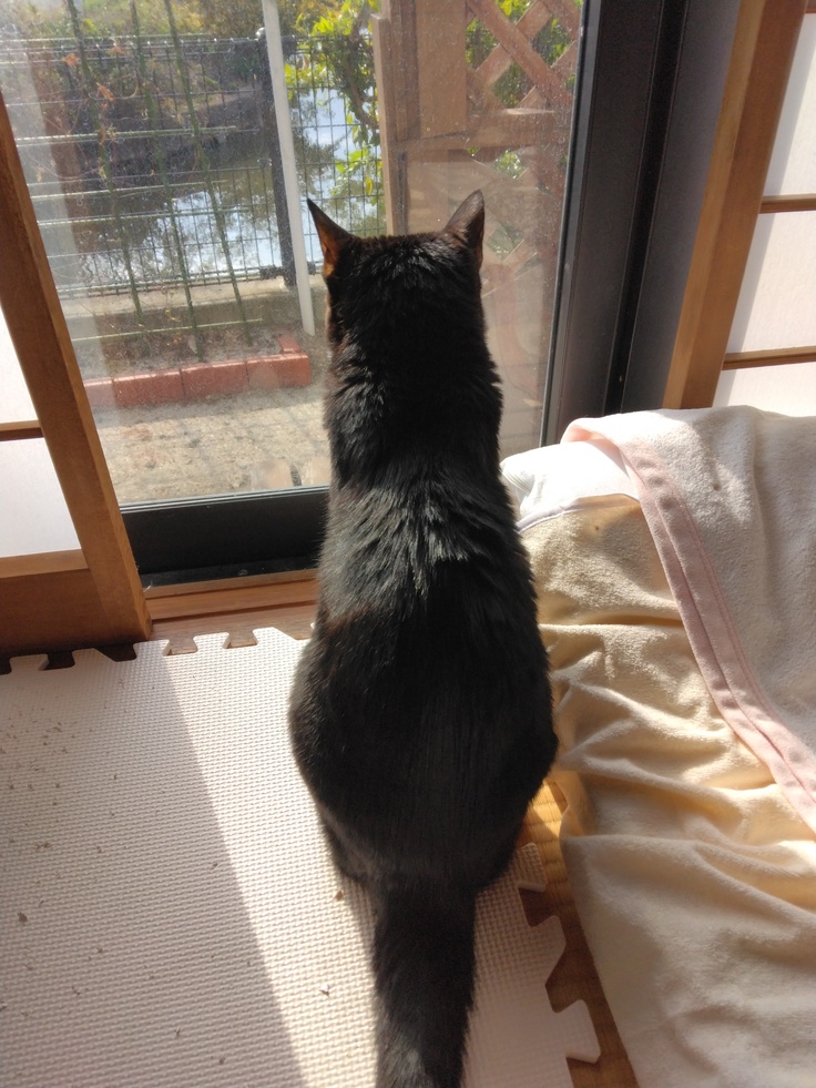 日が差してくると、日光が当たるスポットでお外の観察🐦