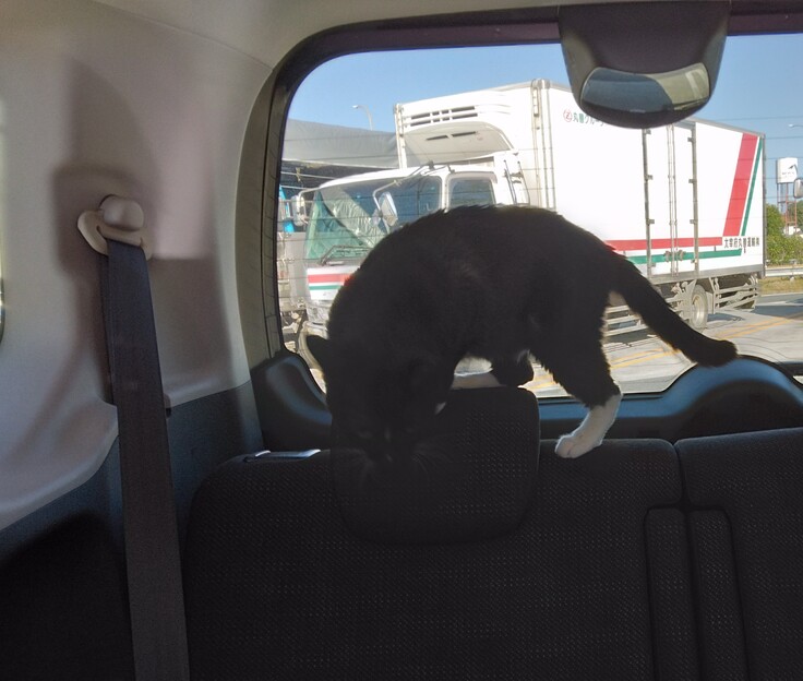 怖かったのでしばらく病院の駐車場に待機して、キャリーケースの中へ入れる状態になって出発。