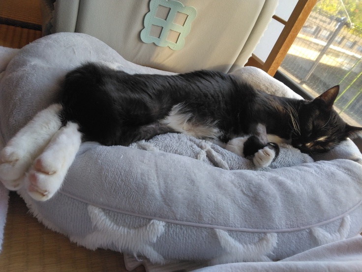 『大丈夫だよママが守るからね』と撫でると、伸びーと一瞬起きてまたウトウトしてピクピク。