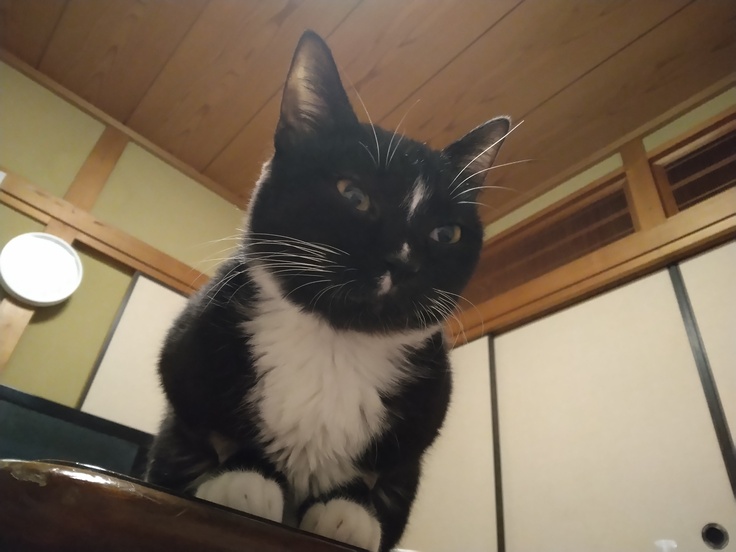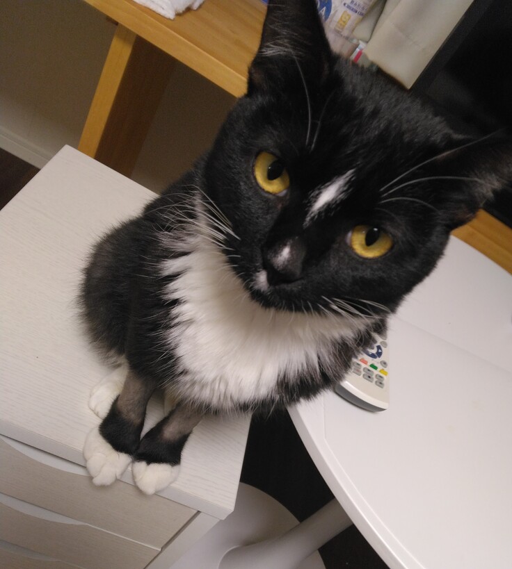 お顔の表情がきつそうなので心配で見に行くと、いつもテーブルの上や棚にちょこんと座っています。ただそれだけ😅