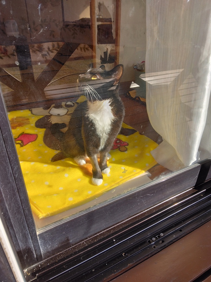 私がいるから欲しがるのかと外に出ると窓でずっと待ってます…