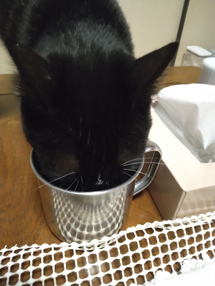 お水は3カ所置いてますが、コップで飲むのが最近のお気に入りです😺👌