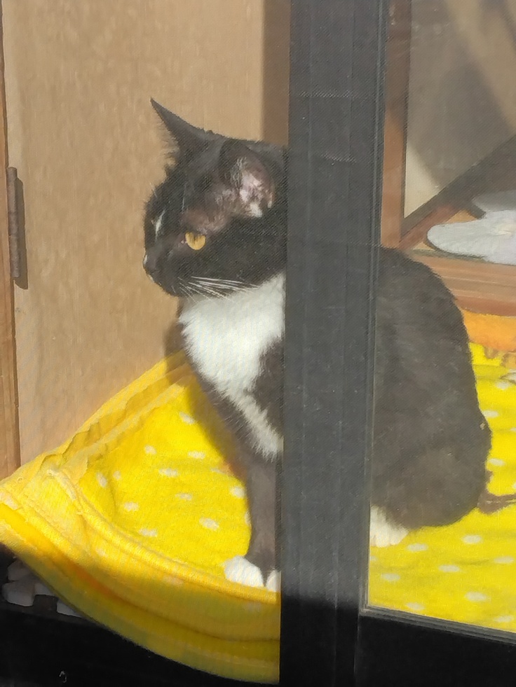 お昼は暖かく、外を見て鳴いていたので、少しだけ犬のくるむ🐶と触れ合わせました。