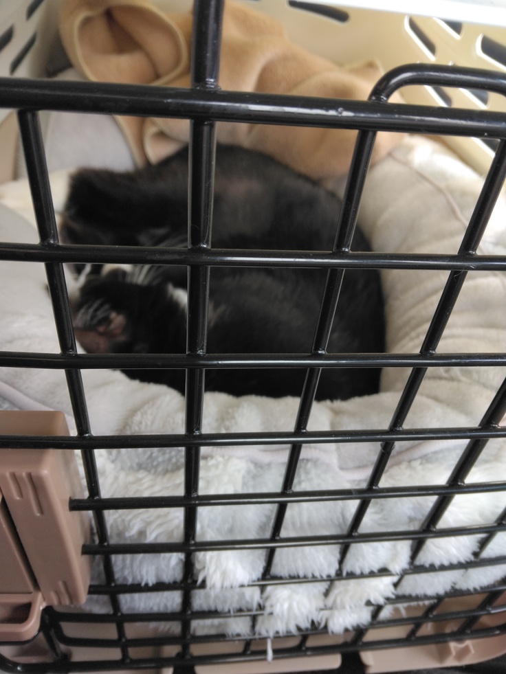 キャリーは犬用の大きな方にお気に入りのベッドを。