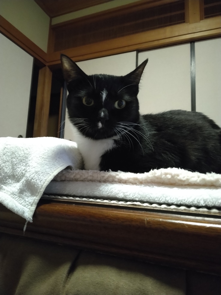 でも昨日より🍚をよく食べ、💩も素晴らしいのを出してスッキリ、今はこたつの中でおねんね中😴