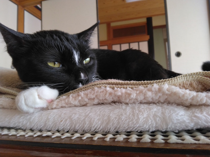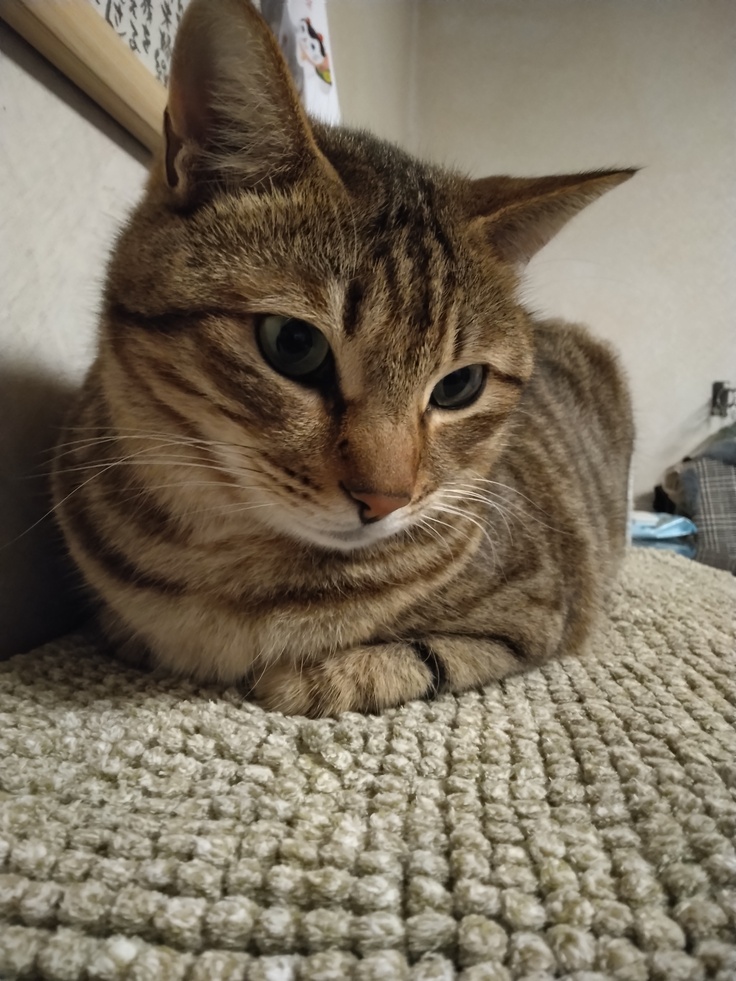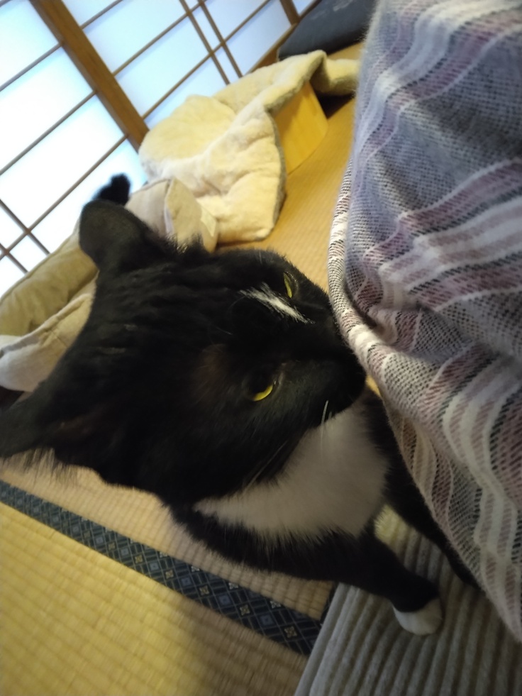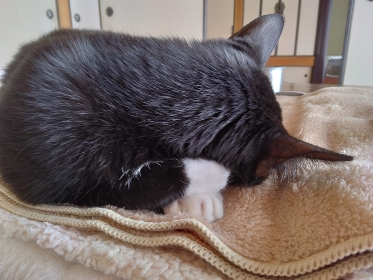 やたらこっち寄りの端っこで寝てまたお腹の上に落ちてきました😂