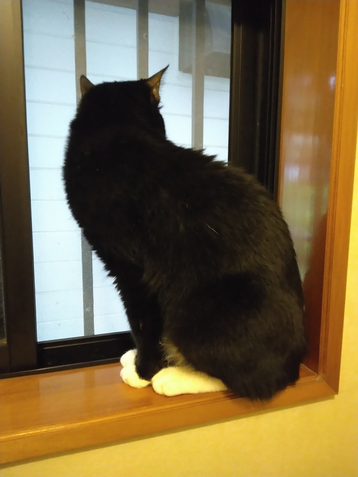 どこへ行くにもついてくる🐈(1階のトイレ🚻の窓)