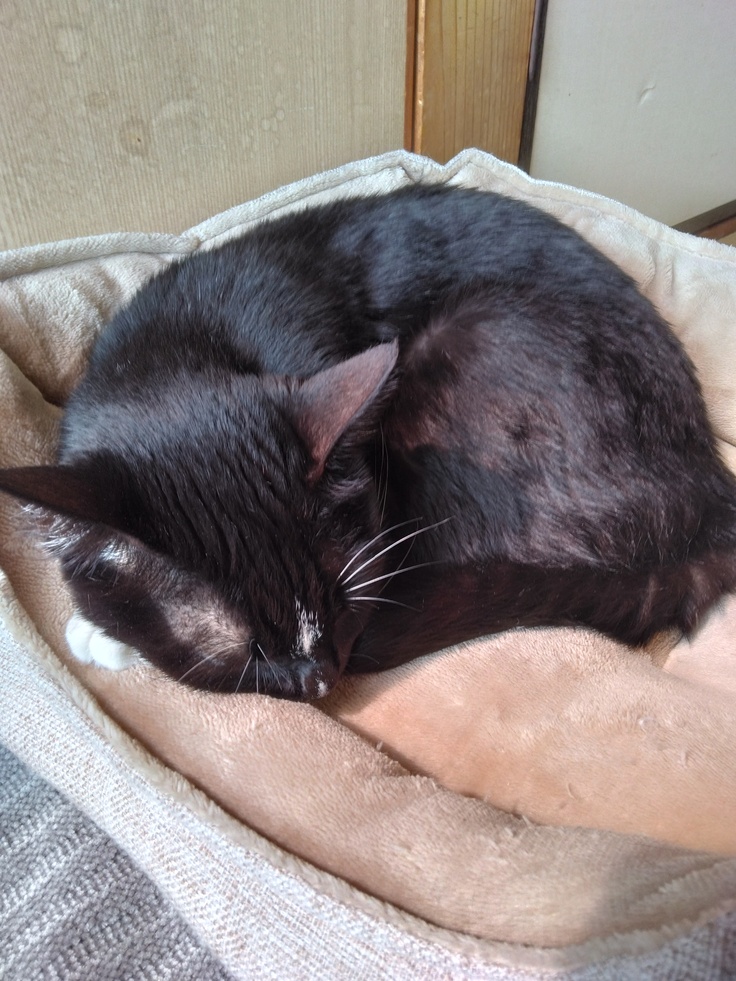 できれば今のように和室のテーブルの上でずっと寝て欲しい(落ちても安心感がある)