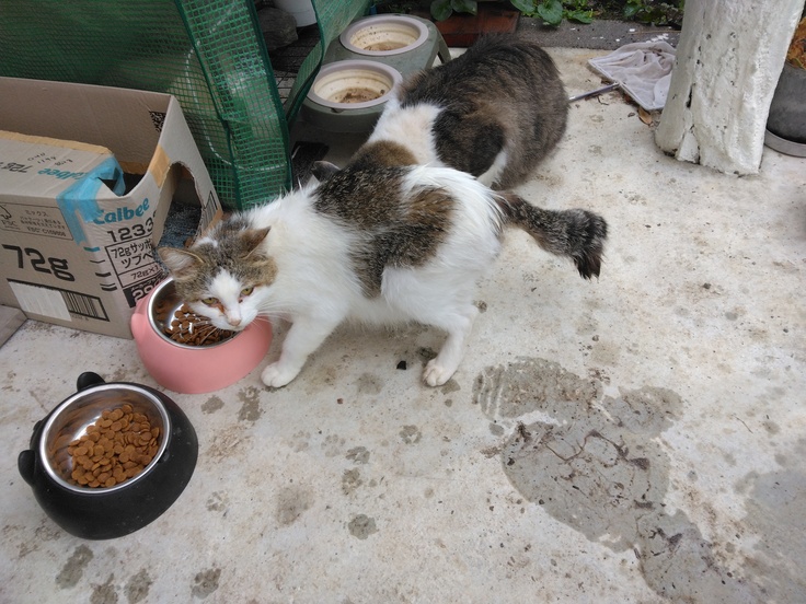 うちのすぐ近くに空き家があってそこの親戚の人がお世話してるみたいで猫ハウス的なものを玄関先に作ってて、でも毎日🍚はあげにきてないようで、お腹すかせてウチに毎日くるように💦