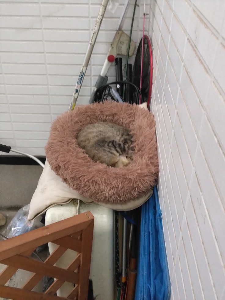 空き家のとこにはケンカ相手が1匹いるようで、ここは外敵がいなくて安心して眠れるのかもしれないです。