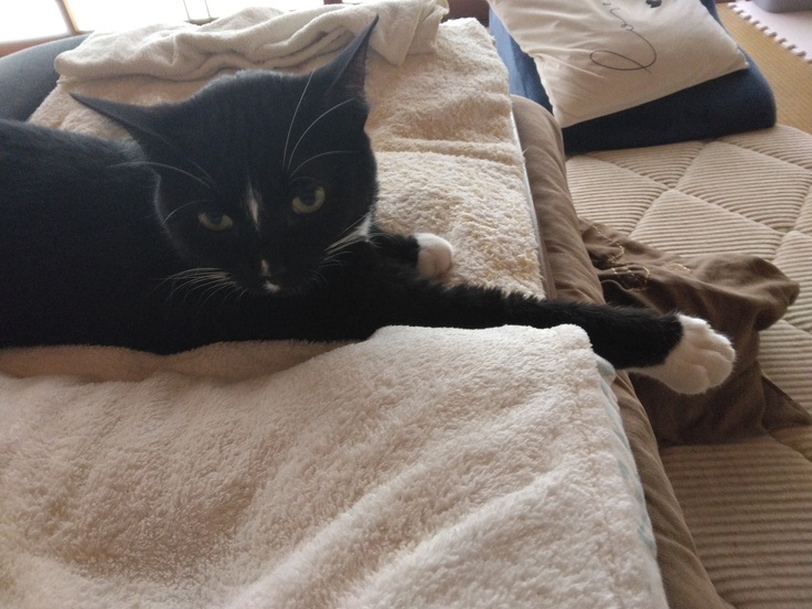 さすがにもう暑くなってきたので、こたつの掛け布団は撤去(発作の時いい仕事してくれてました感謝🙇♀)