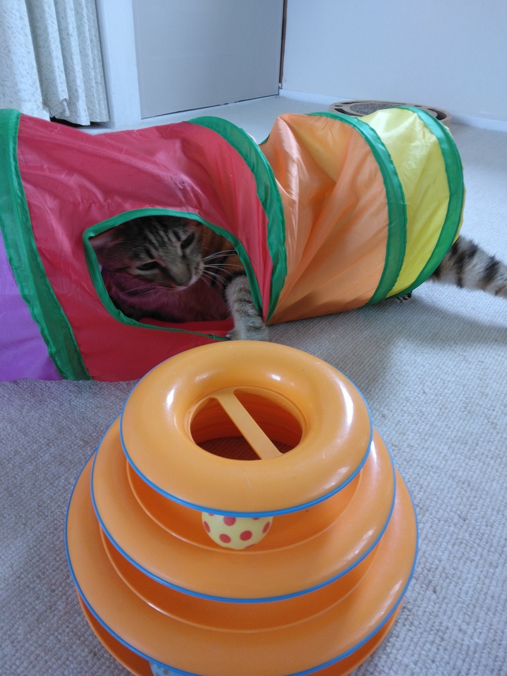 トンネルの中からボールで遊ぶ怠惰ならいくん💧
