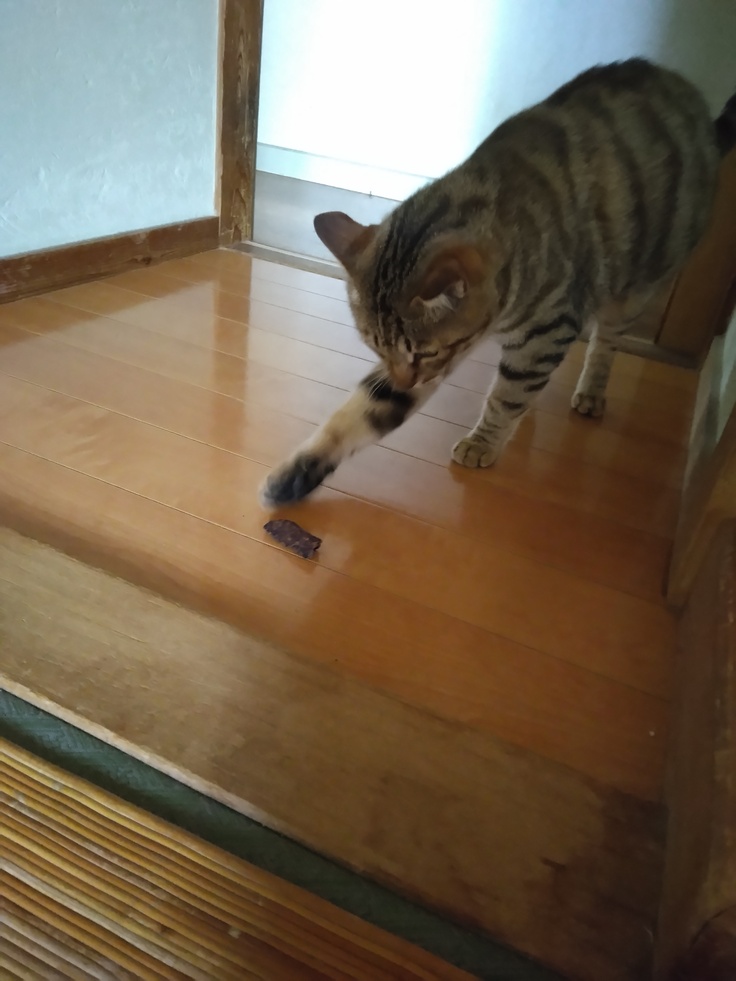 らいくんは体格の割に怖がりで、食べずにちょんちょんするだけで終わりました😑