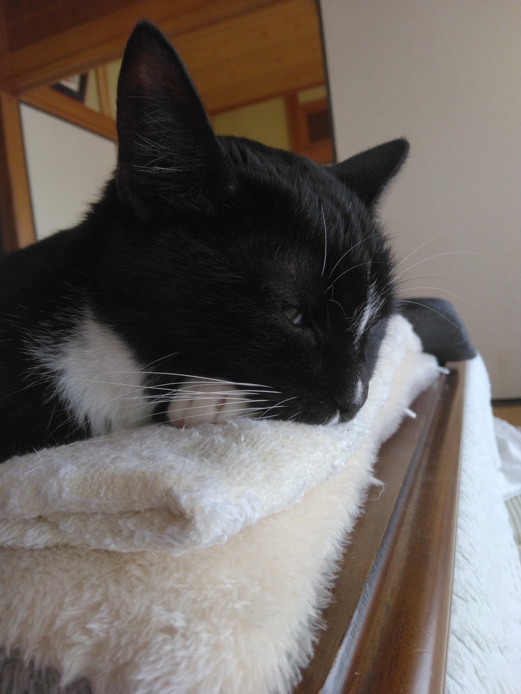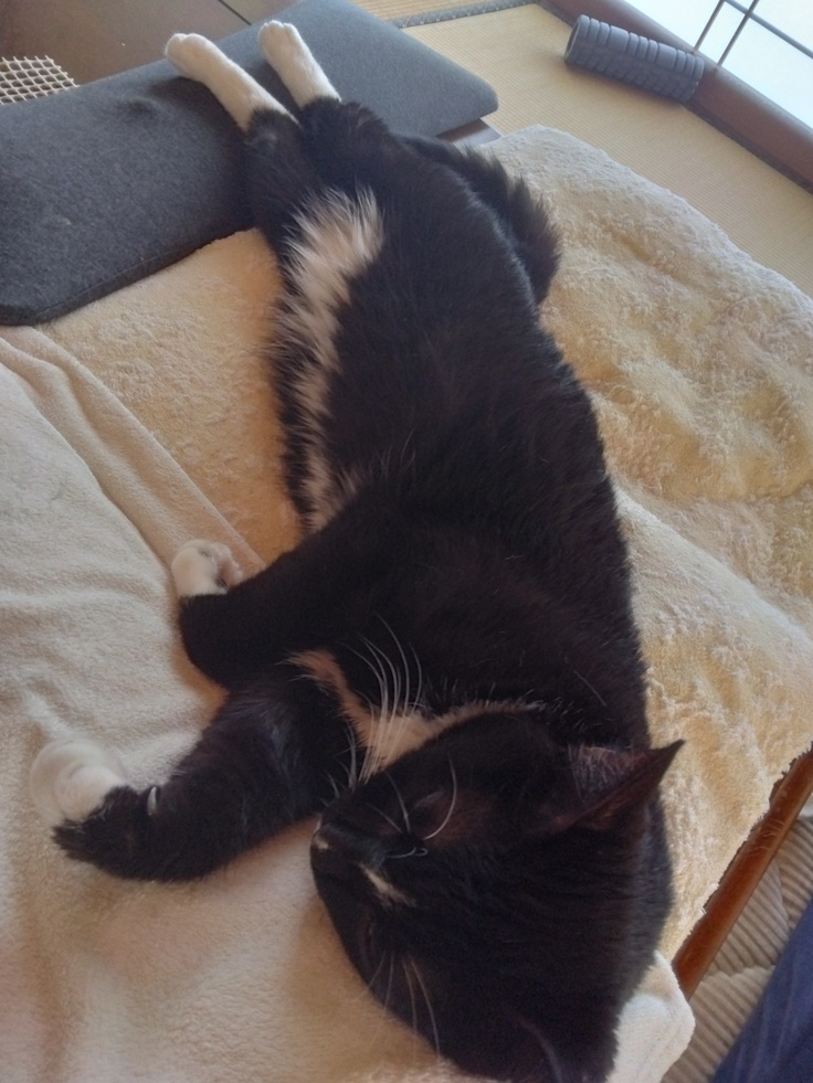 暑いのに、この冬用ベッド気に入ってるみたいで気持ちよさそうに寝てらっしゃいます💧