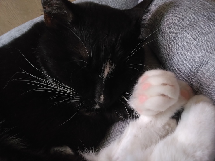 サーキュレーターまわしたら、風と動く機械が嫌いなようで下で朝寝💤