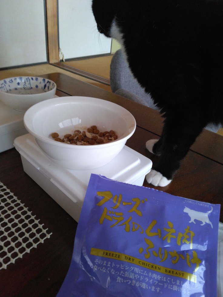 ママクックのムネ肉フリーズドライのふりかけも試しましたが、食べず😟お顔プイッ