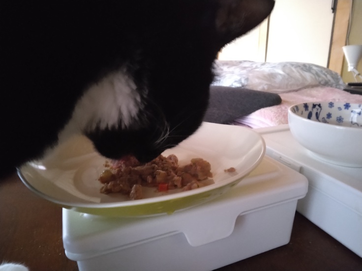 久しぶりヒルズの腎臓ケアも出してみました。表面舐めるだけで終了。。。