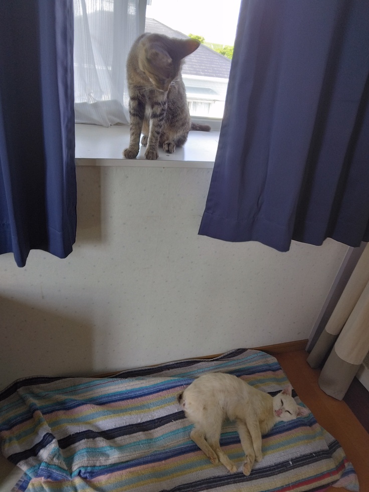 キジオのおかげで安全な場所だと分かってキムも寛いでます😺