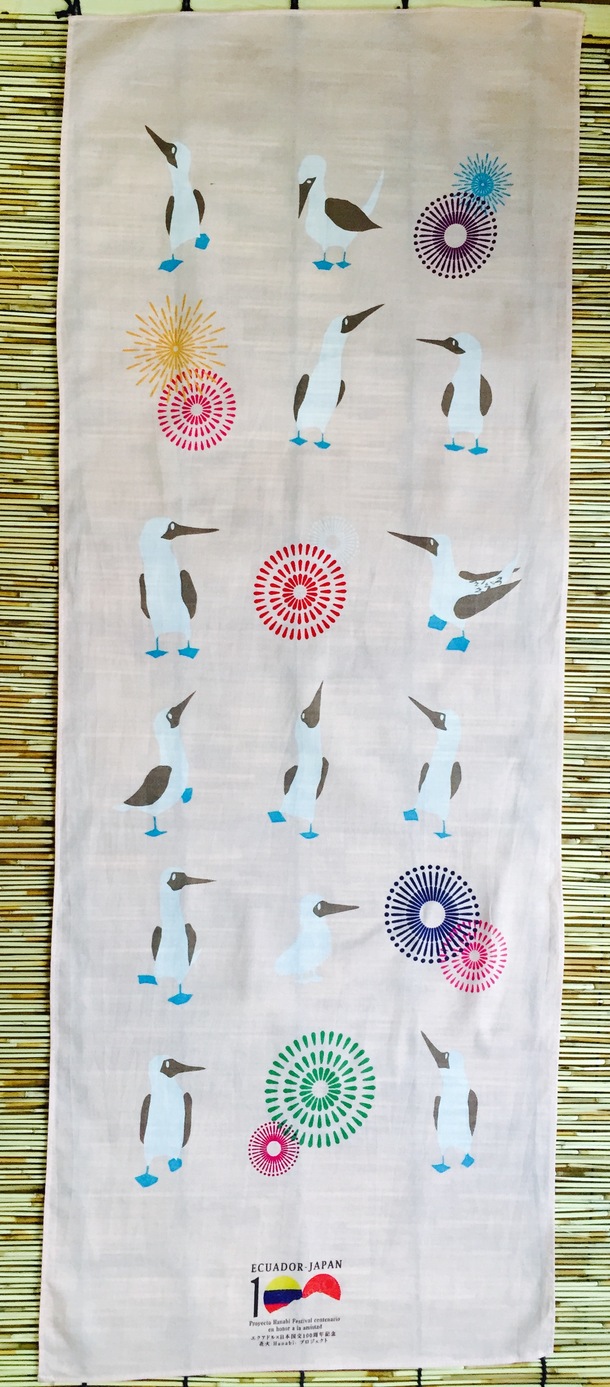 ■手ぬぐいーアオアシカツオドリと花火(ブルー)